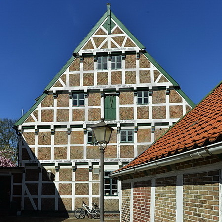 Buntfachwerk in der Gemeinde Jork im Alten Land, Landkreis Stade, Niedersachsen